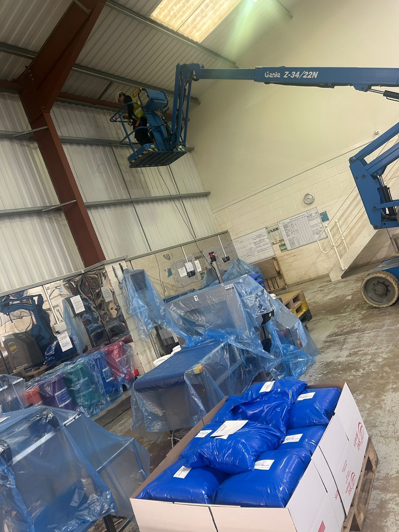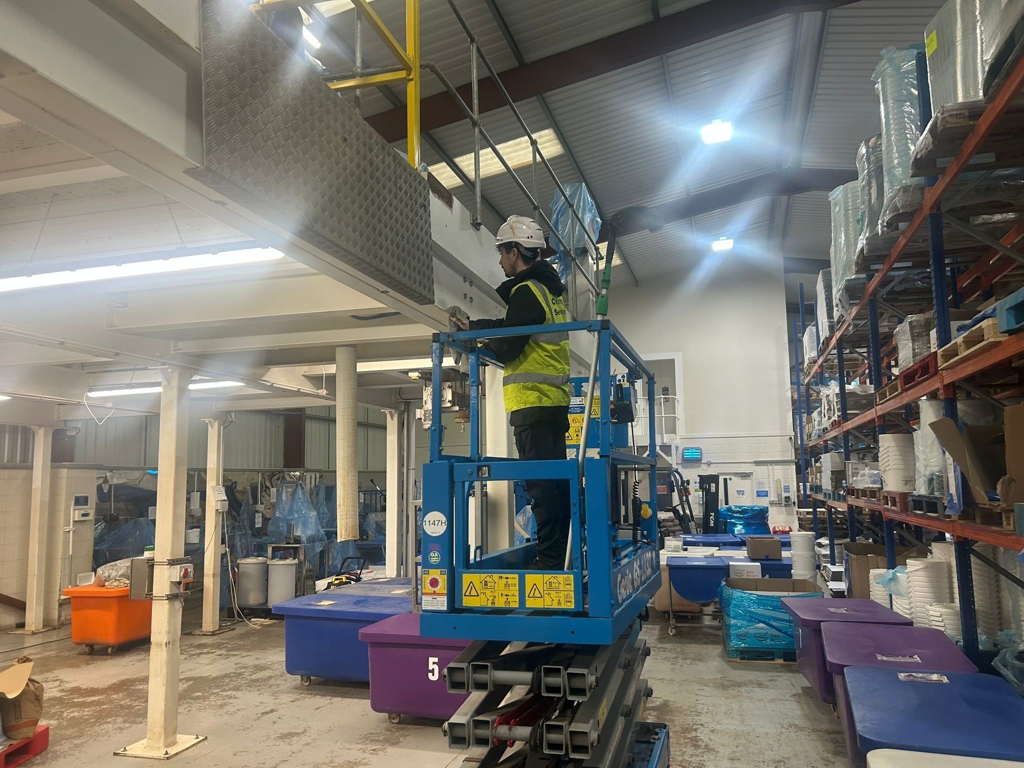 Our team carried out a full high-level clean throughout the warehouse and production areas, targeting elevated surfaces where dust and residues can build up over time. Safe access was provided using MEWPs, allowing our operatives to reach all required areas efficiently while maintaining a controlled working environment.