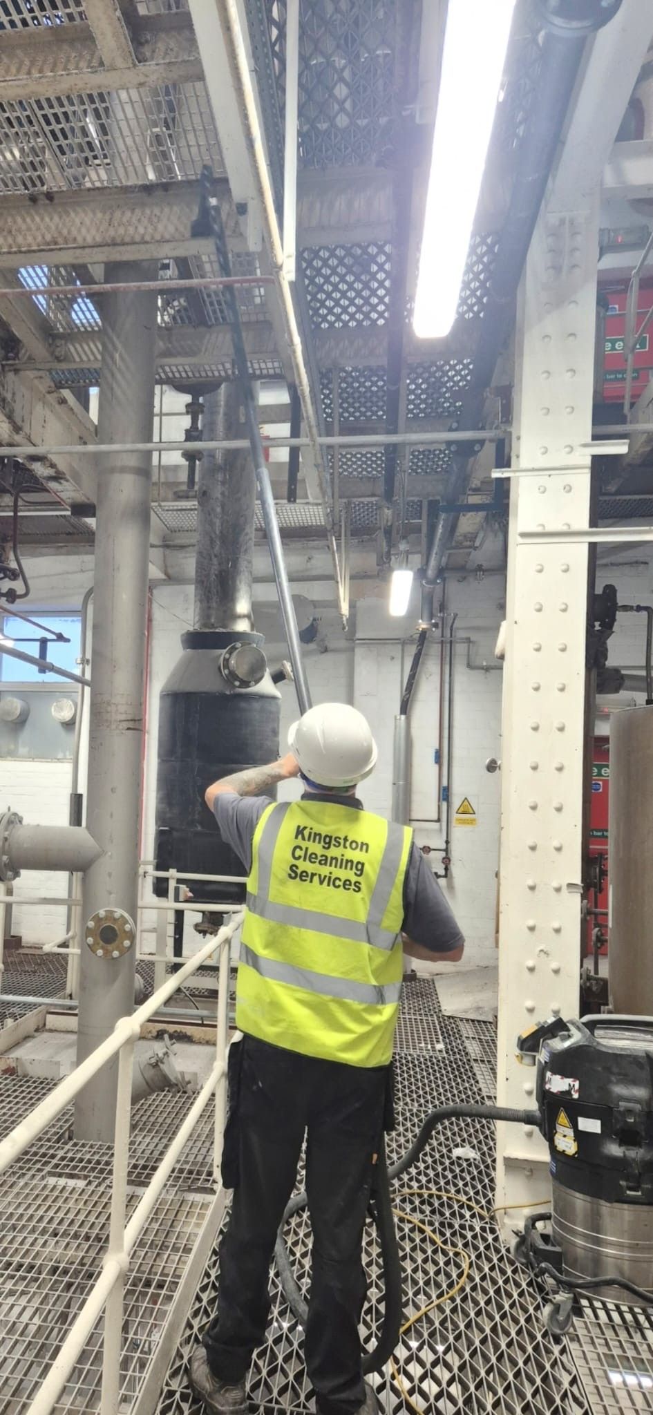 We carried out a full high-level clean using ATEX-rated vacuum systems, ensuring compliance with the strict safety requirements of food manufacturing environments. Our operatives removed accumulated dust and debris from ceilings, overhead pipework, ducting, lighting and structural steelwork. This work helps prevent contamination risks, protects employee health and reduces potential fire hazards linked to dust build-up. By improving cleanliness in these difficult-to-reach areas, we helped Finlays maintain the high hygiene, safety and operational standards expected within the food production industry, without impacting their daily output.