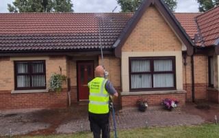 We carried out a full roof clean using our Sky Wash Roof Cleaning System, a specialist high-reach pressure washing solution designed for safe and effective cleaning of tiled roofs. This allowed us to remove moss, algae, dirt and lichen without causing damage to the tiles. The process helps prevent moisture retention, tile cracks and frost damage, while also refreshing the overall look of each bungalow. By the time the work was complete, the roofs were restored to a much cleaner condition, supporting the charity’s commitment to maintaining high-quality, safe and welcoming homes for their residents.