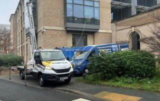 Using MEWPs (Mobile Elevated Work Platforms), our trained operatives carried out a comprehensive clean across the full exterior. We employed a pressure washing system to deep-clean the cladding, tackling surface grime and environmental build-up. For the windows, we used a heated reach-and-wash system, ensuring a streak-free finish across all glass panels. This combination of heat, reach, and precision cleaning delivered outstanding visual results while upholding safety and access compliance throughout the project. The outcome was a visibly refreshed and professionally maintained façade that restored the building’s civic presence in the heart of the city.